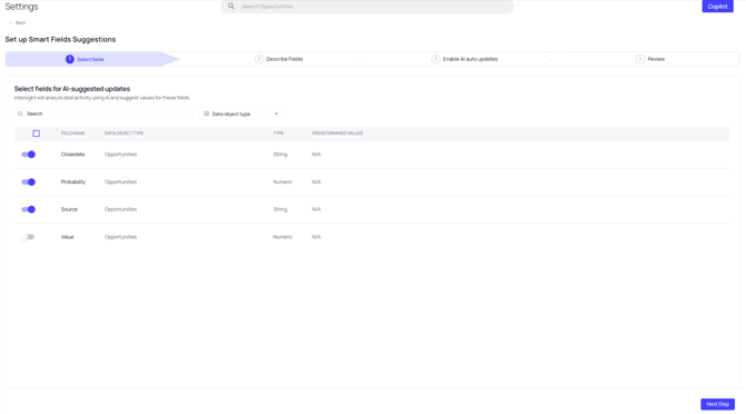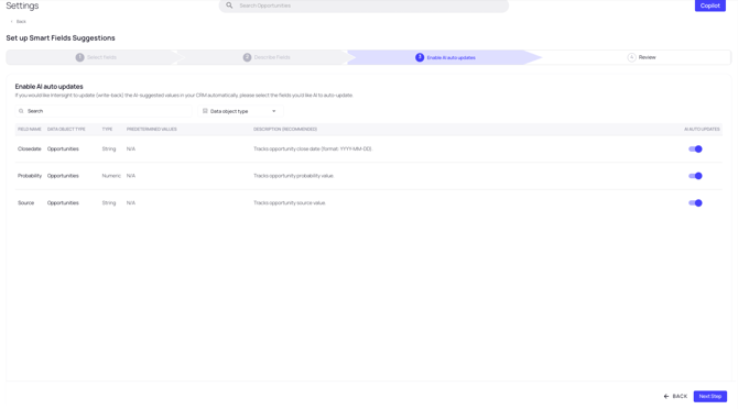 If you would like Intersight to automatically write back field values to your CRM, turn on the "AI Auto-Updates" toggle.
